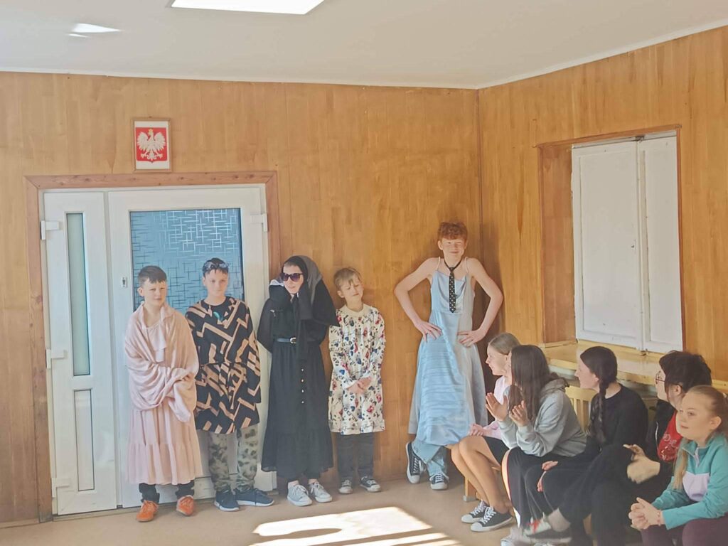 Następnie przeszliśmy do części rozrywkowej, w której drużyny dziewcząt rywalizowały w konkursie muzycznym „Tak to leciało” oraz w kalamburach ze znanymi postaciami. Nie zabrakło emocji przy zaplataniu warkoczy na czas oraz mnóstwa śmiechu podczas pokazu mody, w którym w rolę modeli wcielili się nasi panowie!