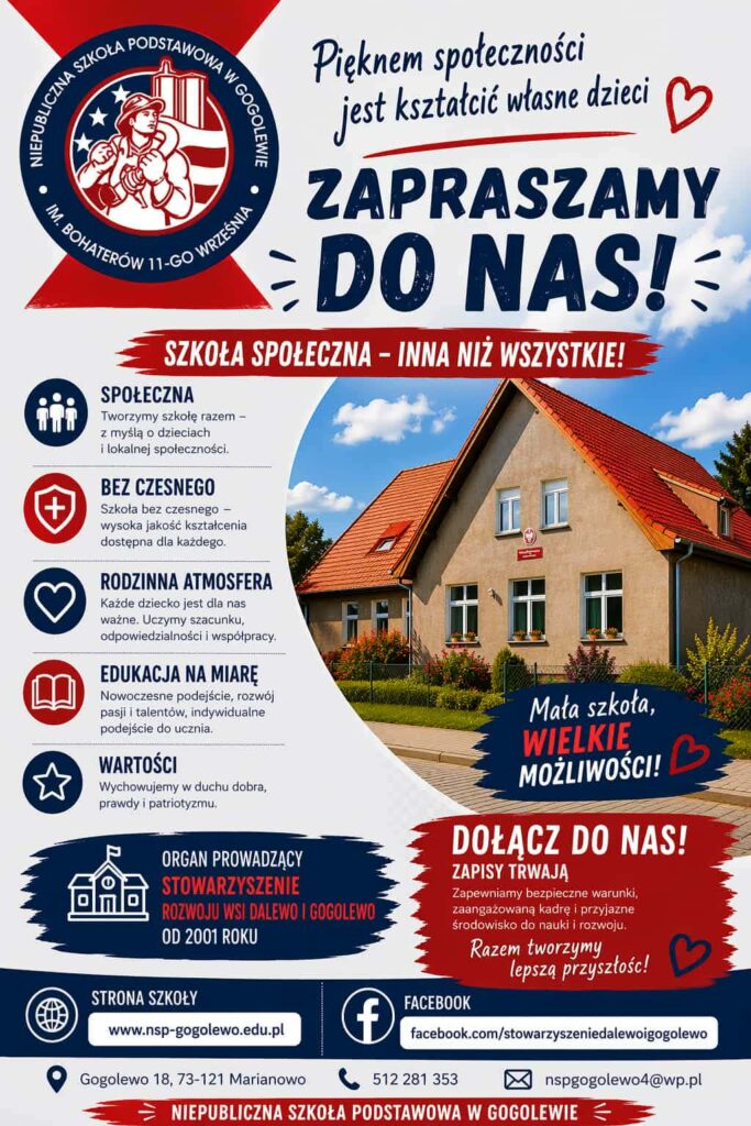 Zapraszamy do Niepublicznej Szkoły Podstawowej w Gogolewie